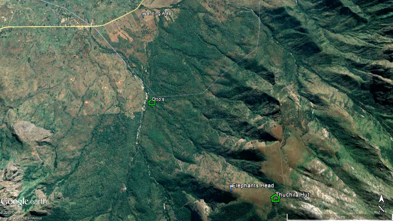 The best landing area is one of the fields or roads on Thuchila Estate. Keep clear of the 33kV power line crossing one of the fields! Land on one of the roads, if the fields are planted - don't damage the crops. Be ready for a bunch of kids welcoming you on landing. Don't give them sweets, money, pens or anything else as they will get excited.