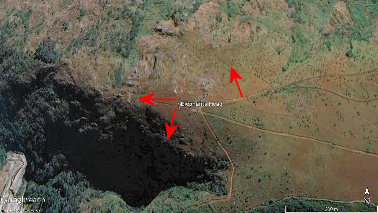 Elephant's head is close to Thuchila Hut on the western side of the Mulanje Mountain. The site is best accessed via the Elephants head path (about 3h, but steep) from Thuchila Estate (former Otto's) or from Tinyade Estate (5-6h via Thuchila Hut not so steep, but longer). The best starting point for the site is Thuchila Estate (log cabins at the end of the road, what used to be known as Otto's). You can drive all the way up there with a suitable vehicle, giving you a 1h head start. If you start at the estate main entrance this will add about 1h to your walk.