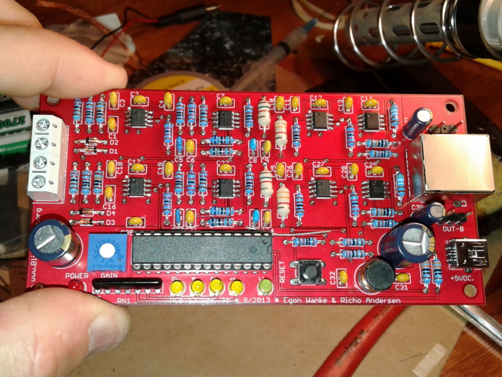 The most difficult part to solder is the amplifier PCB, it contains a number of SMD components, which can be tricky to solder by hand using a normal soldering iron. With some skill and patience it can be done though and the result is pleasing. Once the amplifier has been completed, it can be tested for rudimentary functionality. The mainboard is a little easier to solder, although it also contains an SMD GPS receiver, which can be a little tricky to solder. The other components are, well, monotonous.